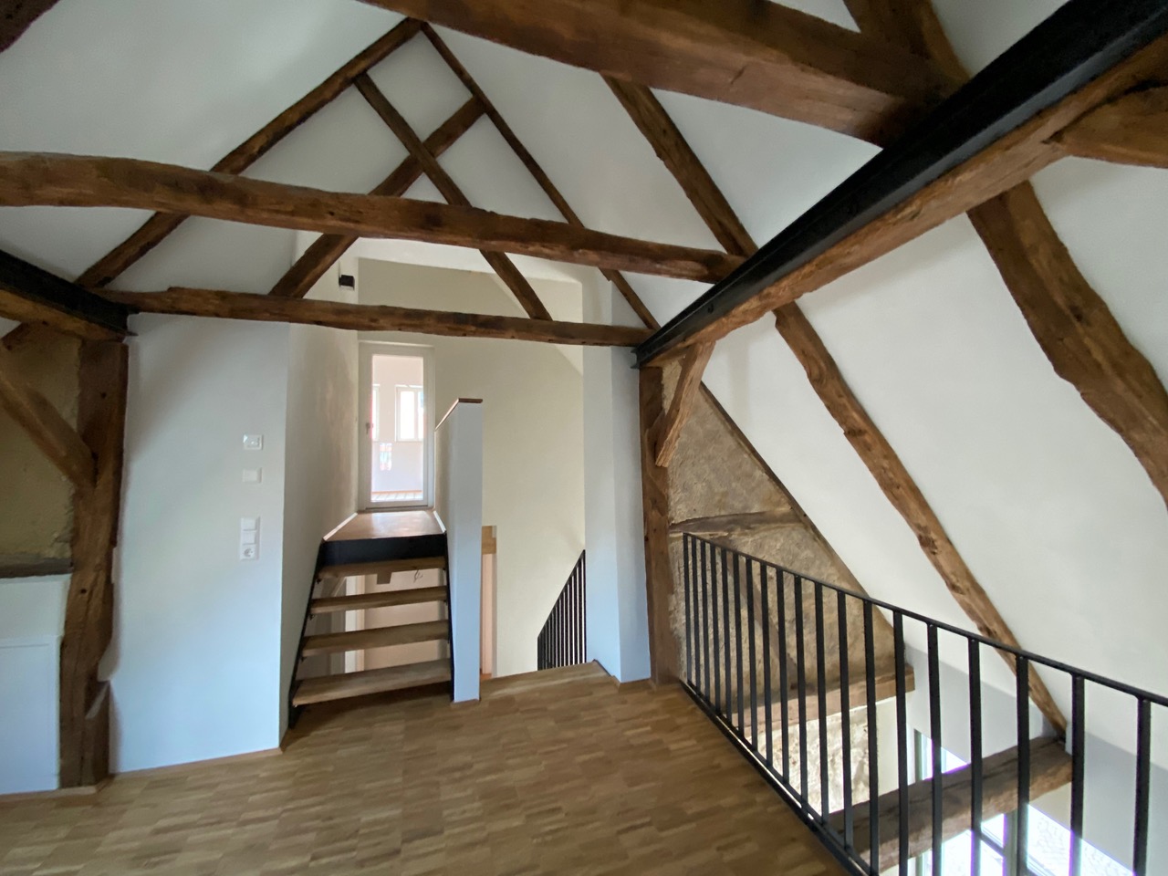 2 PKW-Außenstellplätze, Erstbezug nach Kernsanierung, hochwertige Ausstattung, Fußbodenheizung, Einbauküche, Galerie, Dachloggia, Keller/Abstellräume