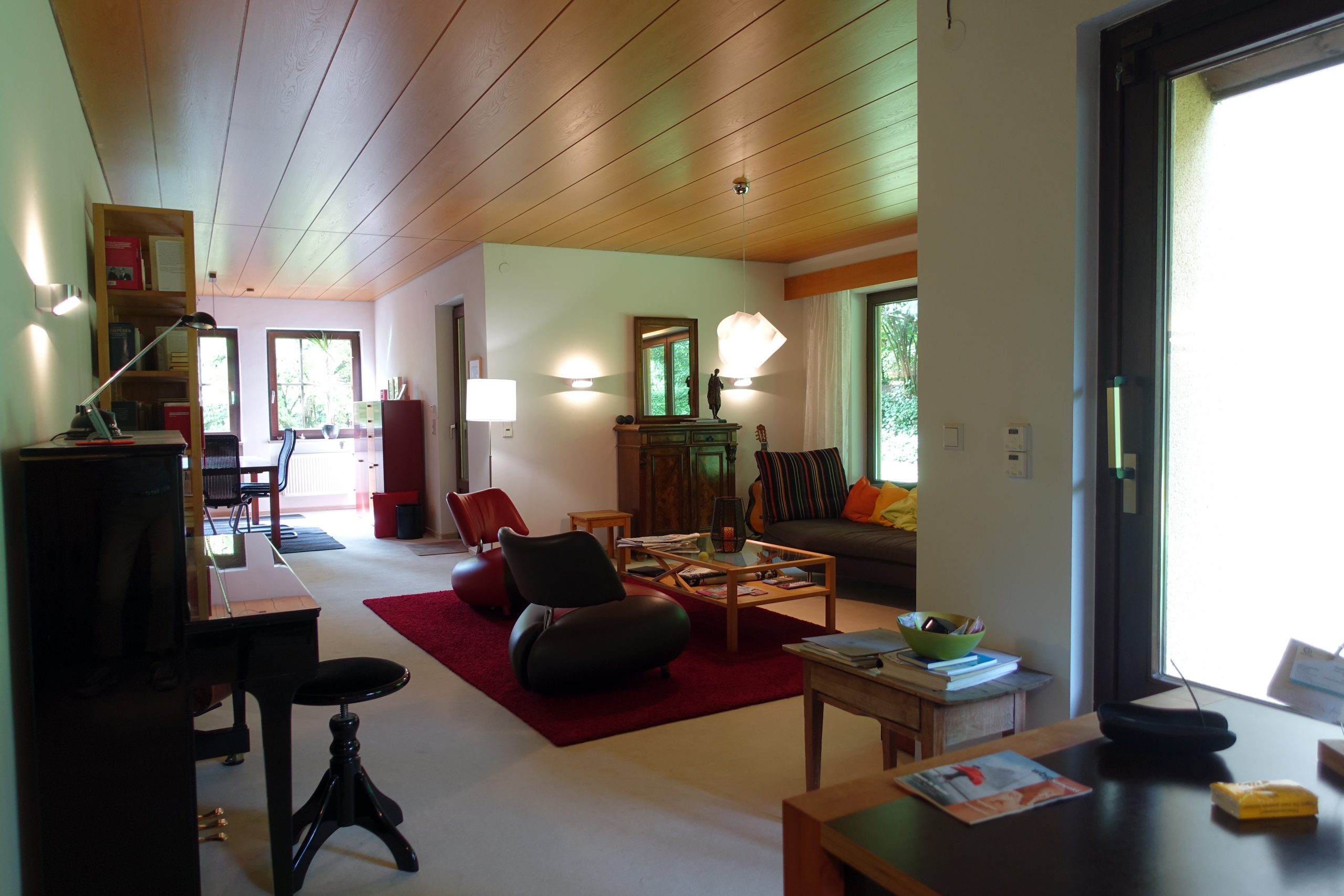 Dieses schicke, sehr offen gestaltete Haus mit Garage und Außenstellplatz liegt sehr ruhig im Teilort Steinbach und wurde im Jahr 1981 erstellt. Im Hauptgeschoss befinden sich ein Schlafzimmer, Wohn-Esszimmer und Arbeitszimmer (alles offen), die Küche und ein Hauswirtschaftsraum mit Waschmaschinen und Trockneranschluß, Gäste-WC und einer überdachten Terrasse. Im Obergeschoss: 3 Schlafzimmer, ein Tageslichtbad mit Dusche, Badewanne, Doppelwaschtisch, WC,Bidet, ein Abstellraum und eine großzügige, überdachte Loggia mit Blick auf die Comburg. Im Untergeschoss befinden sich diverse Hobby- und Abstellräume sowie ein separates WC. Der Garten ist weitestgehend uneinsehbar und pflegeleicht gestaltet.